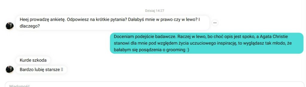 Dzień zakończyłam wiadomością na apce randkowej, następującej treści (tak, poleciał unmatch).